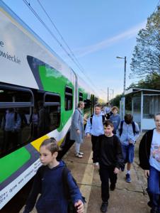 Dnia 18 września 2025r odbyła się wycieczka integracyjna z okazji "Dnia Chłopaka". Uczniowie klas 4-8 wraz z wychowawcami pojechali do Wyszkowa. Wyjazd był o tyle ciekawy, że naszym transportem był pociąg. Kilku uczniów stwierdziło, że po raz pierwszy podróżują takim środkiem transportu....