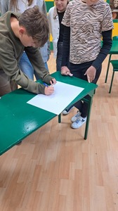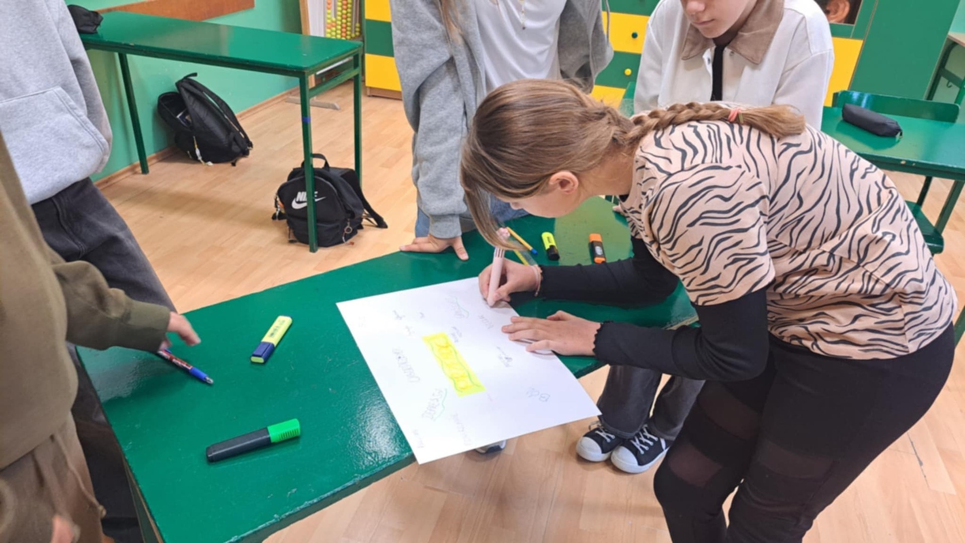 Uczniowie klas IV–VII wzięli udział w warsztatach pt. „Przemoc – przeciwdziałaj i zareaguj”, podczas których uczyli się rozpoznawania różnych form przemocy oraz sposobów właściwego reagowania. Podczas zajęć wspólnie przygotowali plakaty z hasłami nawiązującymi do poruszanych zagadnień ✏️📜