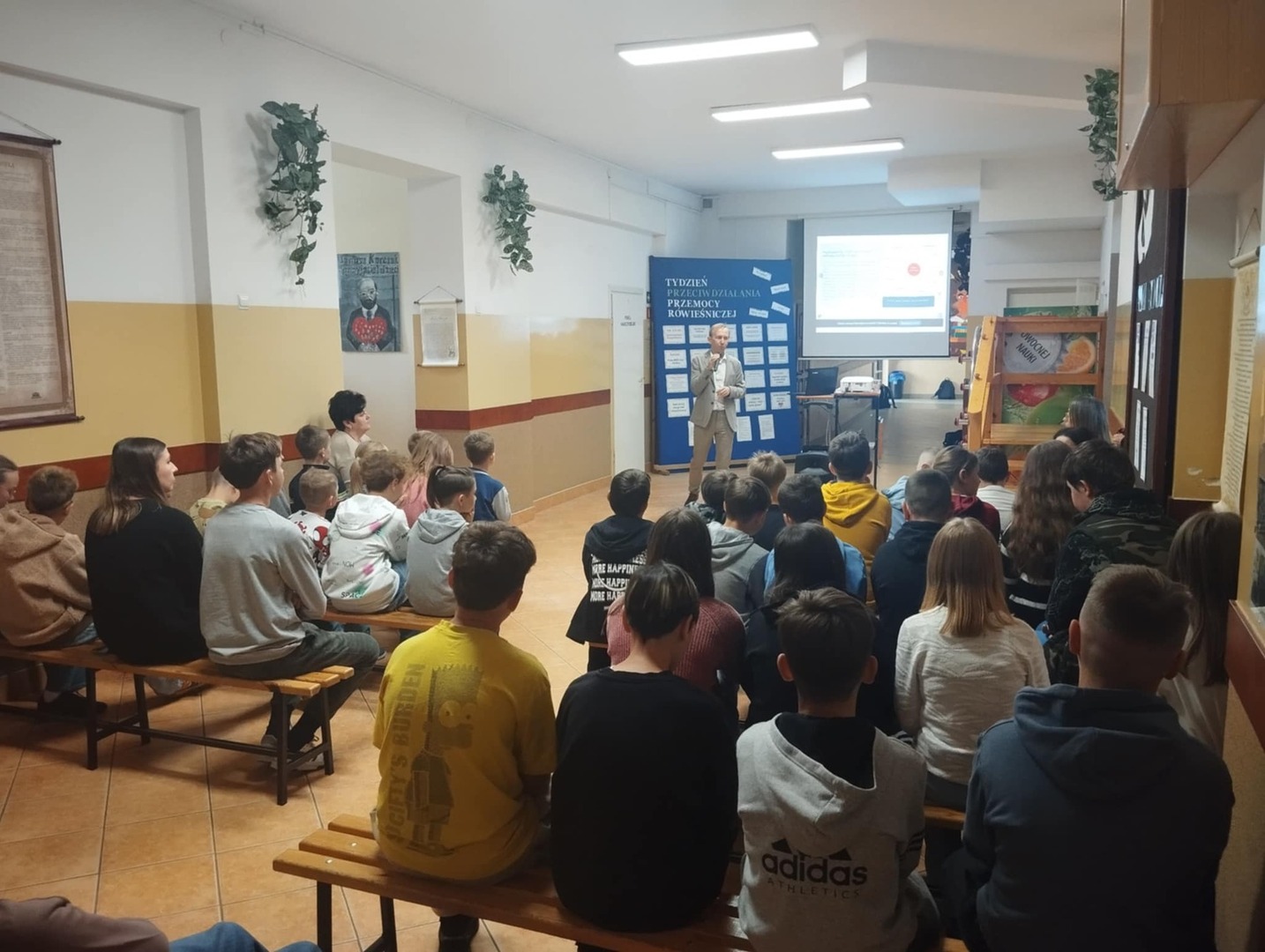 Cała społeczność szkolna wysłuchała wykładu poświęconego problematyce hejtu i mowy nienawiści. Omawiane tematy stanowią realne zagrożenie dla zdrowia psychicznego dzieci i młodzieży oraz utrudniają prawidłowy rozwój relacji rówieśniczych.