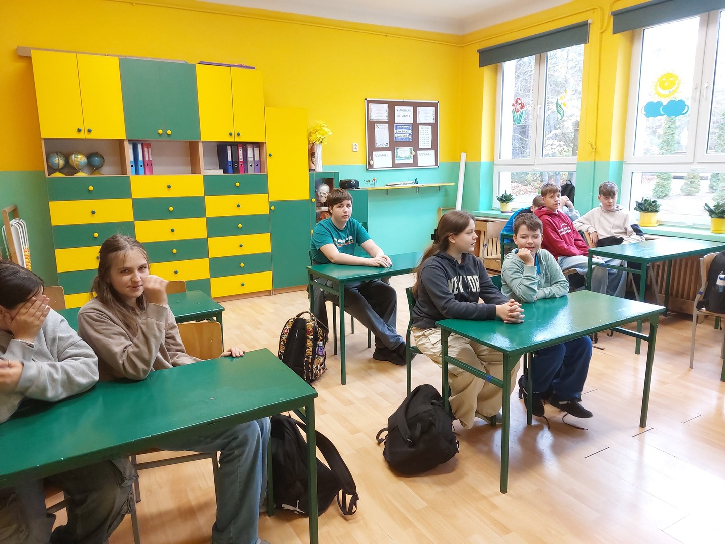 W dniu 22.10.2025 r. uczniowie klas V-VII naszej szkoły mieli okazję wziąć udział w spotkaniu przeprowadzonym w ramach programu profilaktyki alkoholowej „Debata”. Spotkanie trwało trzy godziny lekcyjne, a każda z nich odpowiadała innej części spotkania.