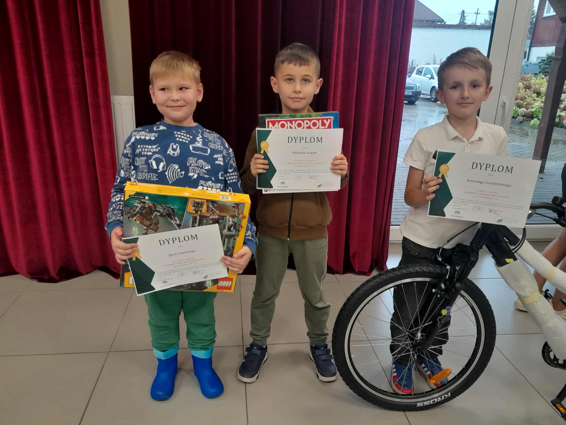Uczniowie naszej Szkoły dnia 26 września wzięli udział w Gminnym Konkursie Wiedzy Ekologicznej. Wydarzenie miało na celu promowanie wiedzy na temat ochrony środowiska oraz rozwijanie postaw proekologicznych wśród dzieci i młodzieży. Reprezentanci szkoły wykazali się dużą wiedzą i zaangażowaniem, zdobywając cenne doświadczenia i przyczynili się do popularyzacji działan na rzecz natury.