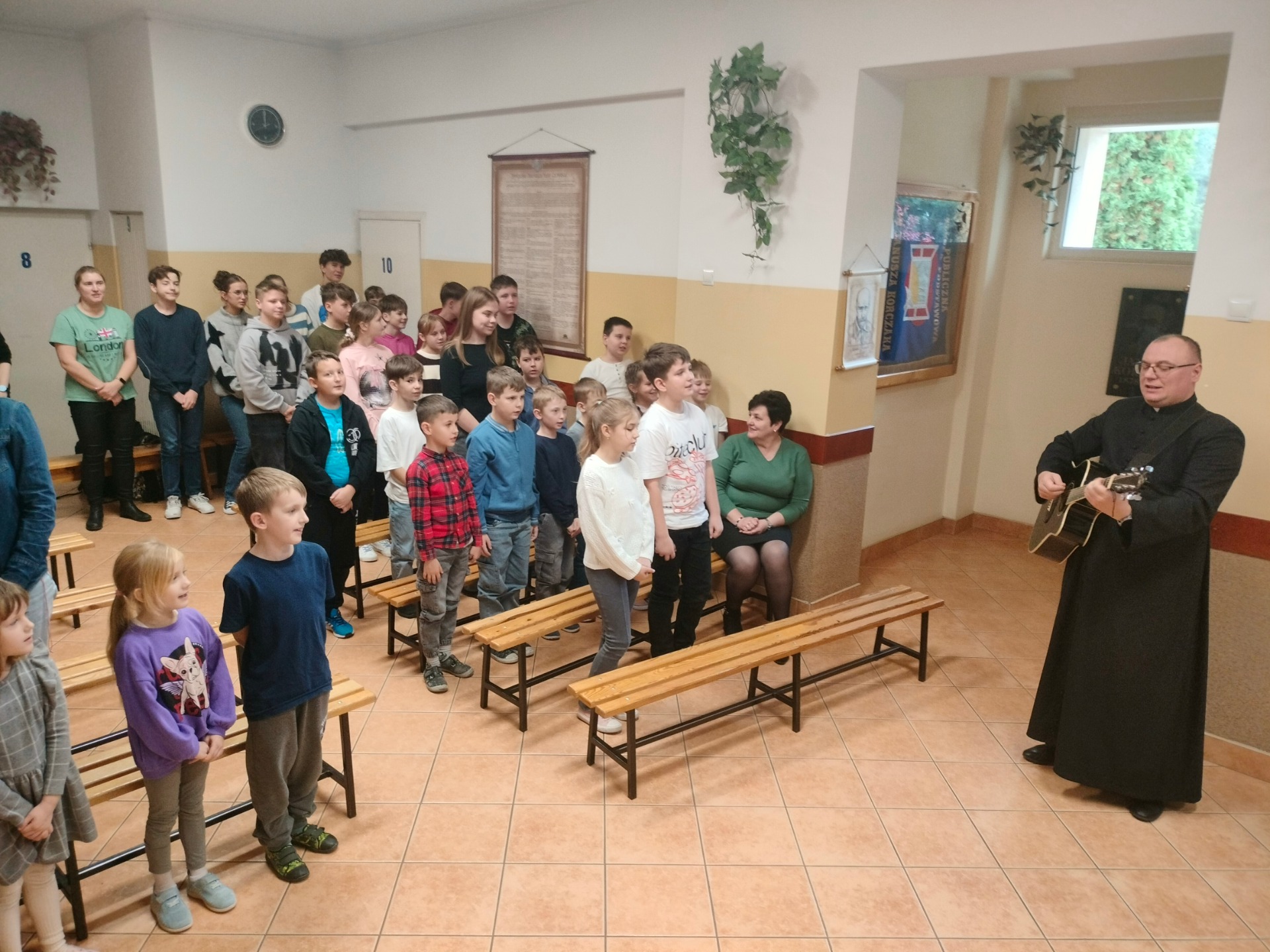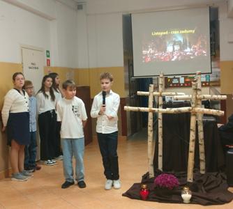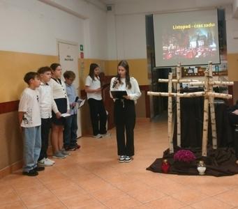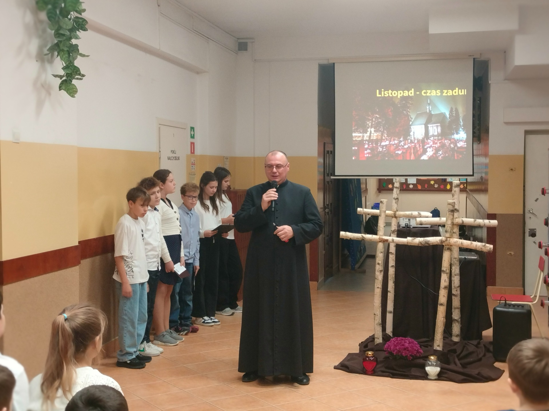 Pamięć o zmarłych jest bardzo ważna, gdyż wartość narodu mierzy się jego stosunkiem do przodków. W naszej szkole listopadowa zaduma udzieliła się wszystkim 28 października podczas apelu z okazji Wszystkich Świętych. Uczniowie z klasy IV - VII pod opieką ks. Kamila Paź przybliżyli nam życie Świętych w prezentacji multimedialnej i śpiewie , recytowali wiersze mówiące o jesiennej zadumie, o przemijaniu, wędrowaniu, niepotrzebnym lęku przed śmiercią oraz oddali hołd zmarłym nauczycielom, kapłanom, żołnierzom i wszystkim bliskim.