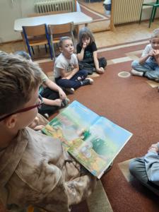 Za nami kolejny zaczytany czwartek.  W dniu dzisiejszym czytał nam Dawid - uczeń klasy V. Czytał dzieciom bajkę "Brzydkie kaczątko".  Dzieci zrozumiały, że nie należy nikogo oceniać po wyglądzie, ponieważ prawdziwe piękno często ujawnia się z czasem, a odmienność nie jest powodem do wyśmiewania ... 😃