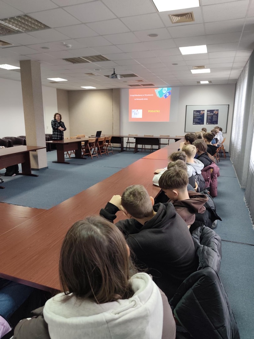 Po udanym spektaklu uczniowie udali się do Urzędu Skarbowego w Wyszkowie, gdzie uczestniczyli w lekcji podczas której dowiedzieli się o funkcjonowaniu urzędu, a także o roli podatków w funkcjonowaniu państwa. Po zajęciach dzieci mogły sprawdzić swoją wiedzę w quizie. Poprawne odpowiedzi były nagradzane. Uczniowie mieli także okazję zwiedzić cały Urząd, a nawet zasiąść w fotelu zastępcy naczelnika.