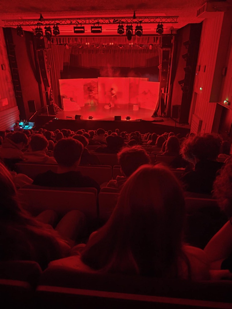 Pierwszym punktem wyjazdu był spektakl "Widziane z Olimpu" wystawiany przez Kielecki Teatr Lektur, który przyjechał do Wyszkowskiego Ośrodka Kultury. Podczas przedstawienia uczniowie mieli okazję przypomnieć sobie najważniejsze mity greckie, takie jak: mit o puszce Pandory, Prometeuszu, Syzyfie, Dedalu i Ikarze, Odyseuszu, czy o podziemnej krainie Hadesie.
