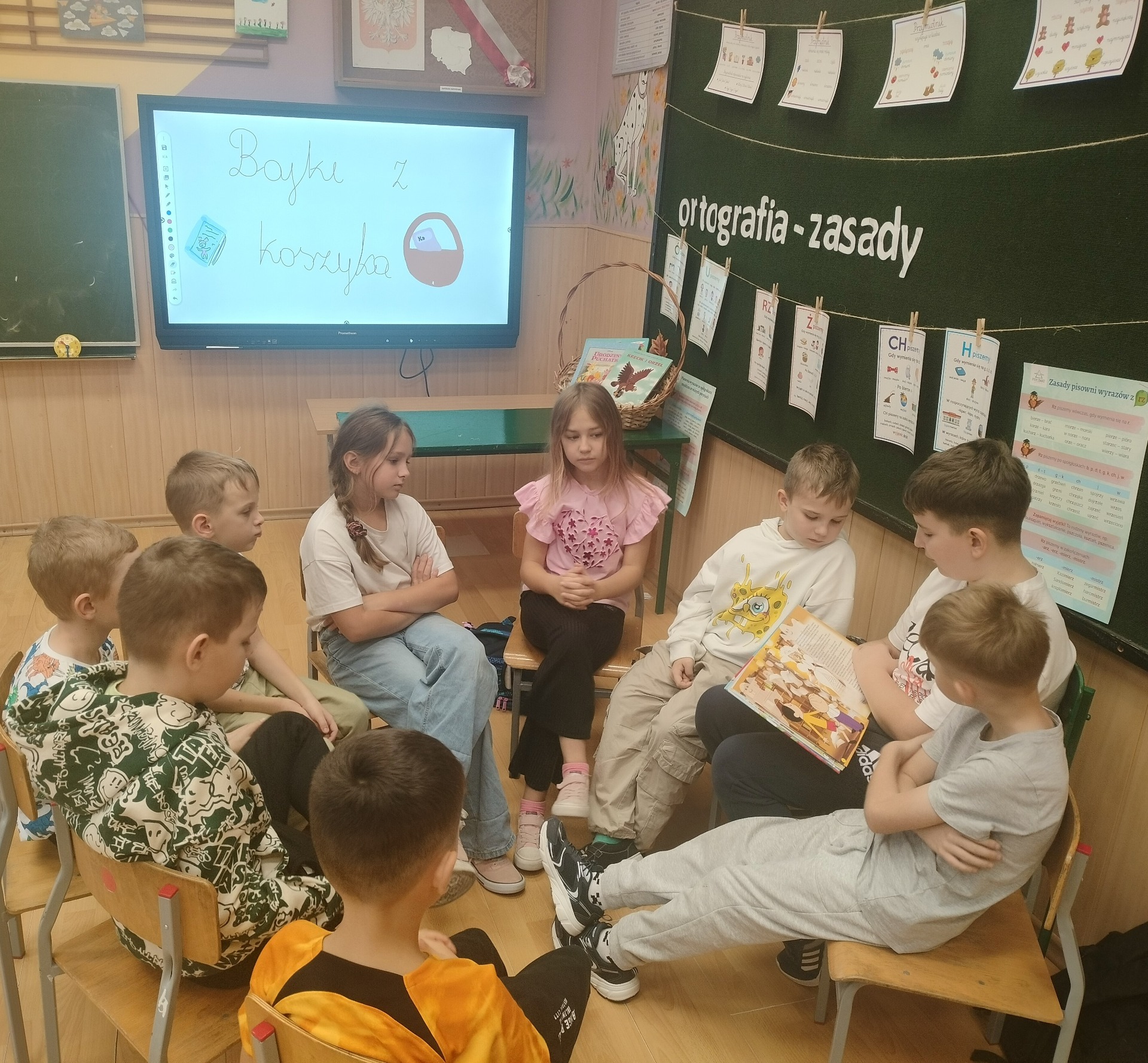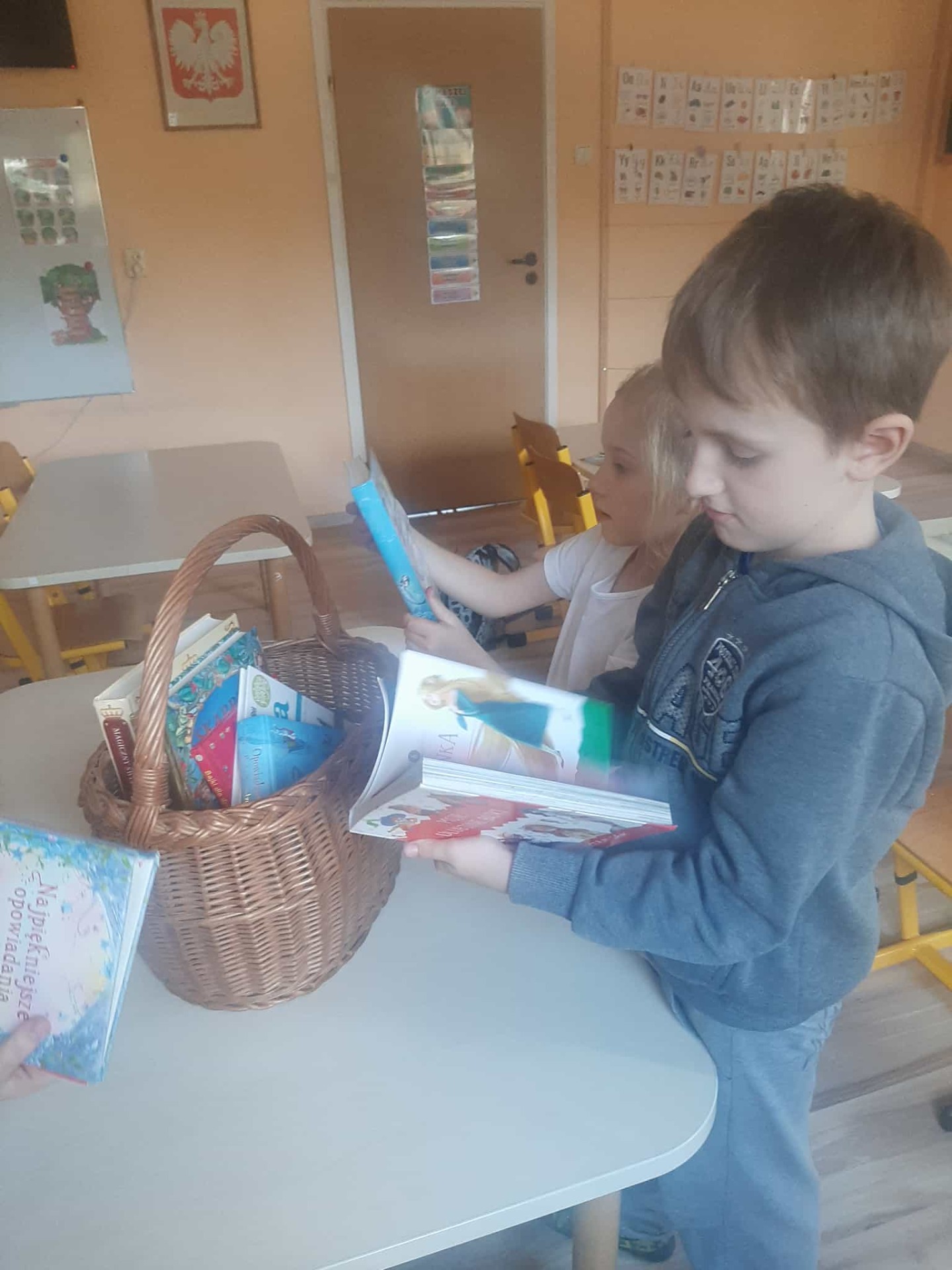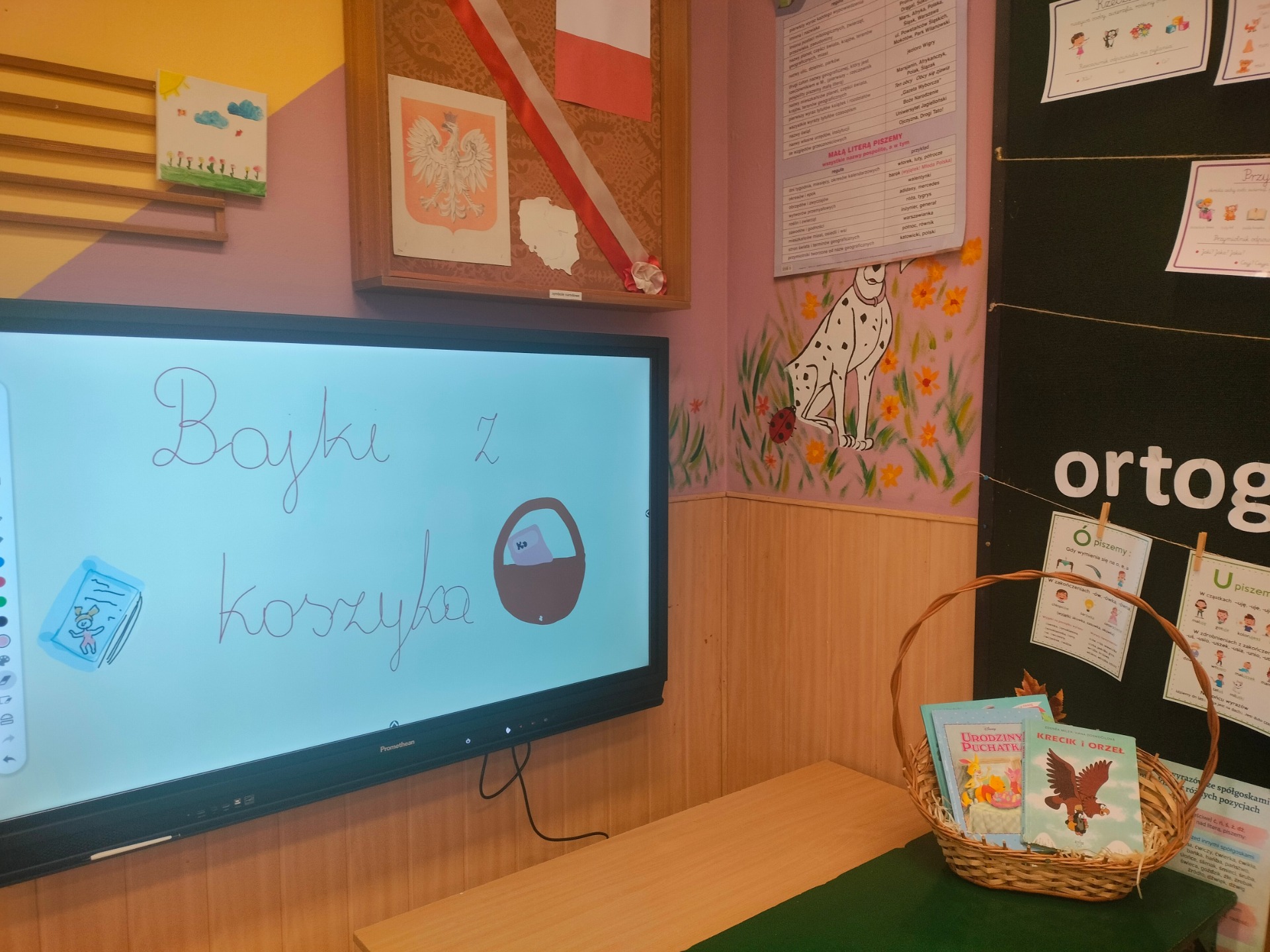 Zakończyliśmy w klasach 1-3 innowacje pedagogiczną "Bajki z koszyka" , która trwała 2 miesiące i miała na celu modelowanie pasji czytelniczych, wsparcie i budzenie całościowego i uporządkowanego rozwoju , pobudzenie procesu edukacji językowej i odzwierciedlenie poprawnego kontaktu z książką przy pomocy wzorca osób dorosłych. W tym czasie dzieci samodzielnie czytały dla kolegów i koleżanek swoje ulubione bajki i fragmenty książek, rozwijaliśmy wypowiedzi rozmawiając o każdym tekście. Gościliśmy także mamę Mikołaja Panią Beatę Pochmara , która również czytała dzieciom. Zorganizowaliśmy dwa konkursy "Zakładka do książki" i " Królewna Śnieżka". Dzieciom bardzo spodobał się taki projekt i zachęcił ich do czytelnictwa.