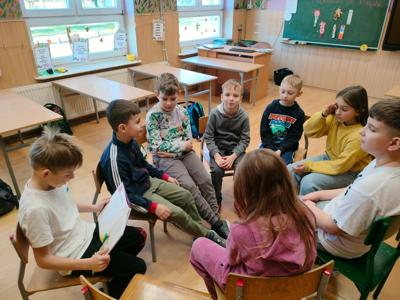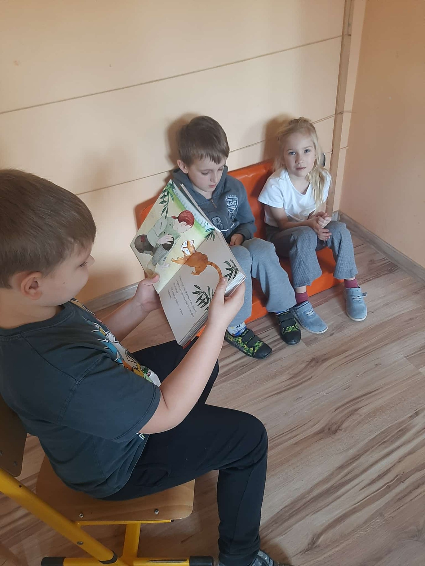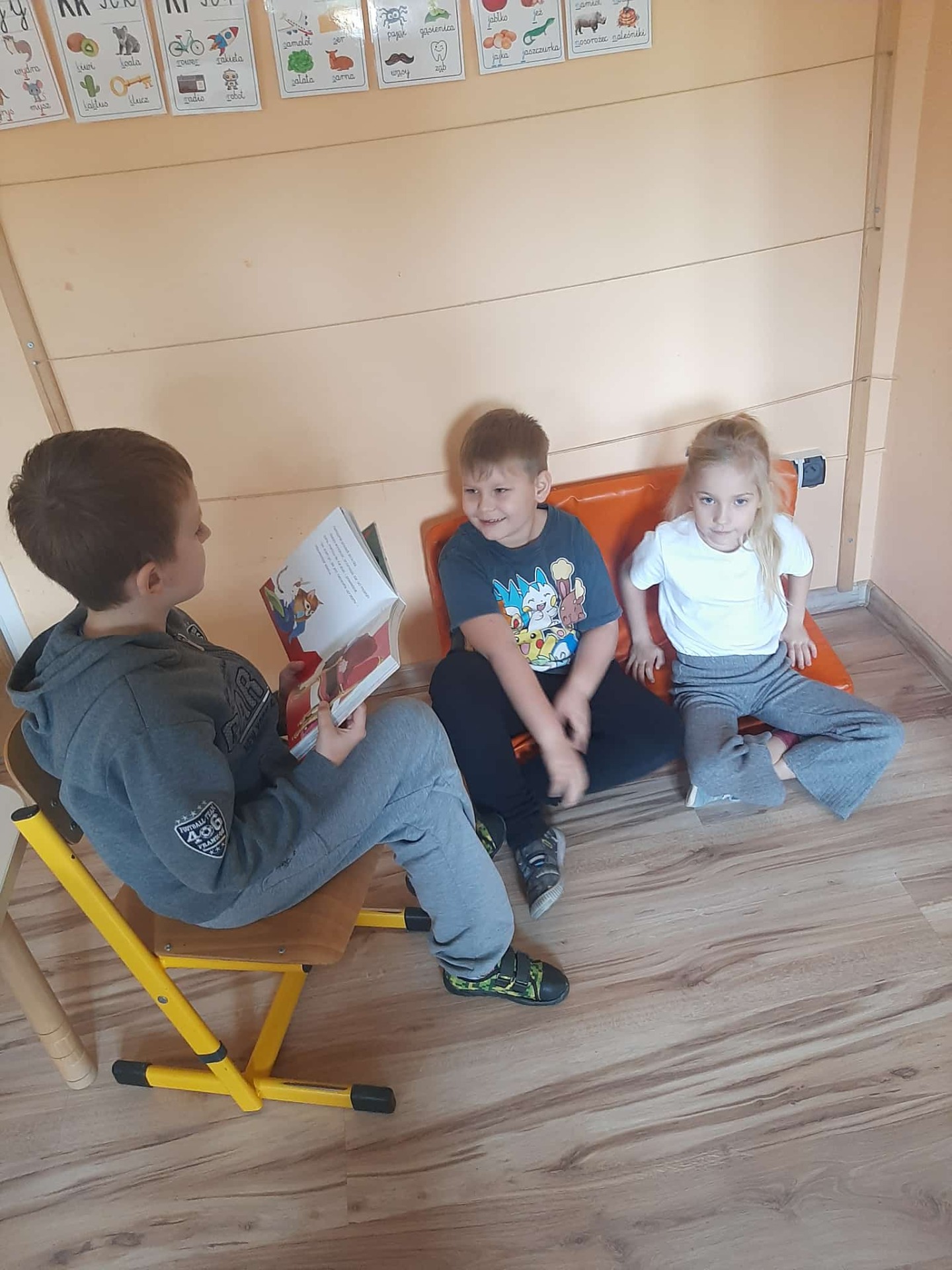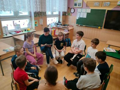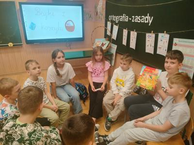 Zakończyliśmy w klasach 1-3 innowacje pedagogiczną "Bajki z koszyka" , która trwała 2 miesiące i miała na celu modelowanie pasji czytelniczych, wsparcie i budzenie całościowego i uporządkowanego rozwoju , pobudzenie procesu edukacji językowej i odzwierciedlenie poprawnego kontaktu z książką przy pomocy wzorca osób dorosłych. W tym czasie dzieci samodzielnie czytały dla kolegów i koleżanek swoje ulubione bajki i fragmenty książek, rozwijaliśmy wypowiedzi rozmawiając o każdym tekście. Gościliśmy także mamę Mikołaja Panią Beatę Pochmara , która również czytała dzieciom. Zorganizowaliśmy dwa konkursy "Zakładka do książki" i " Królewna Śnieżka". Dzieciom bardzo spodobał się taki projekt i zachęcił ich do czytelnictwa.