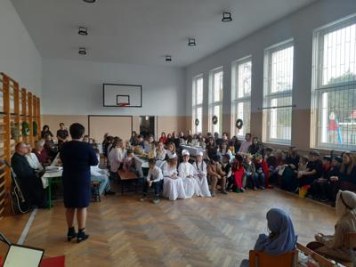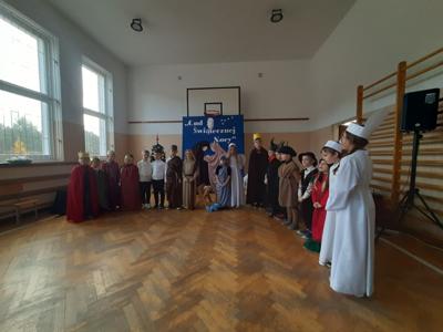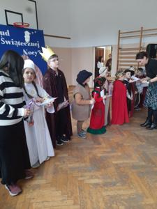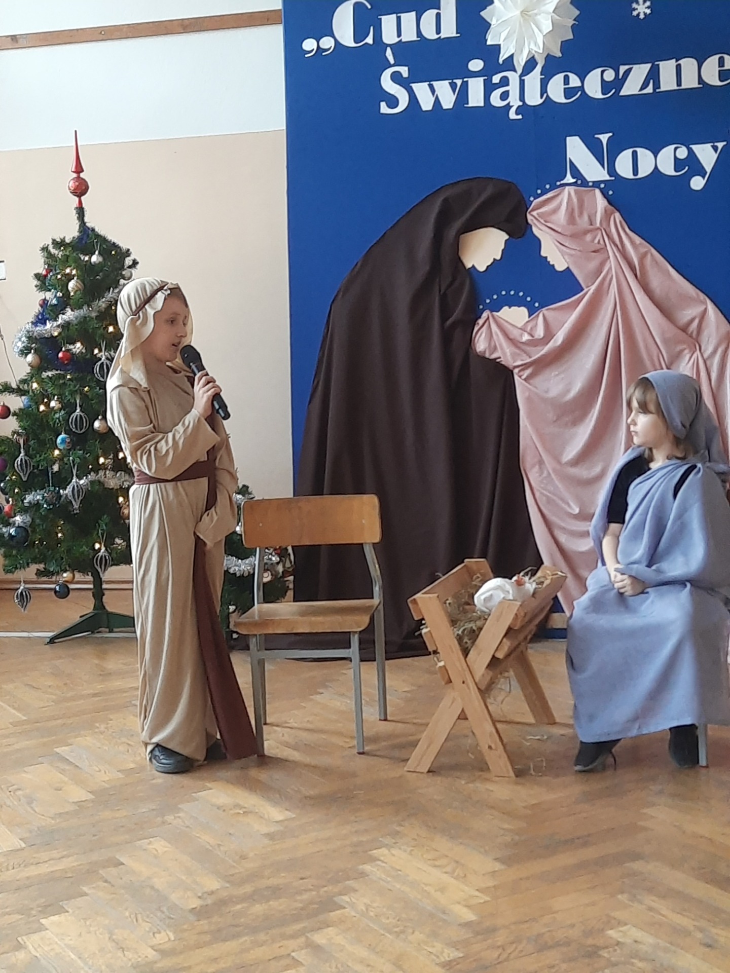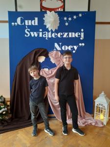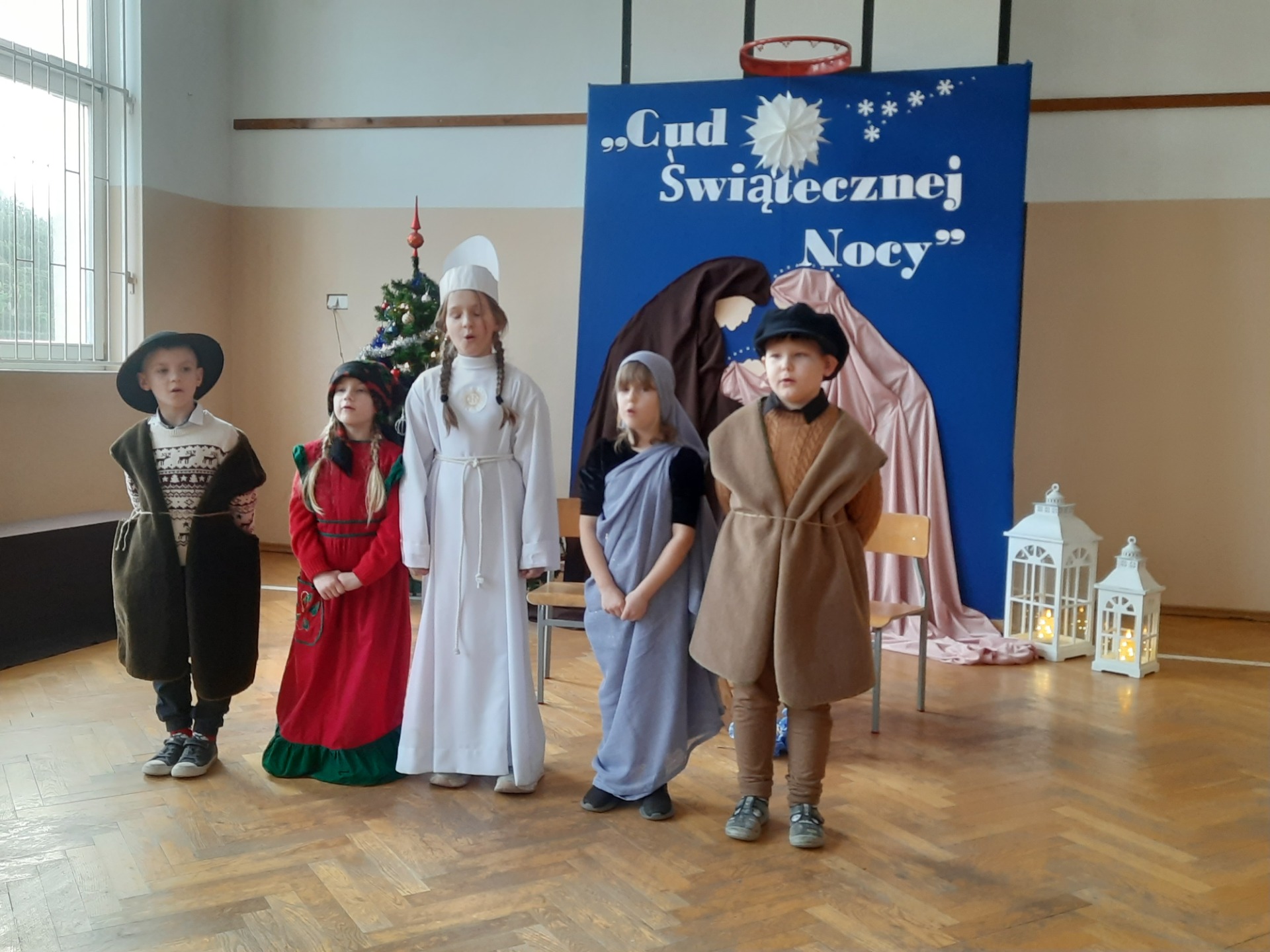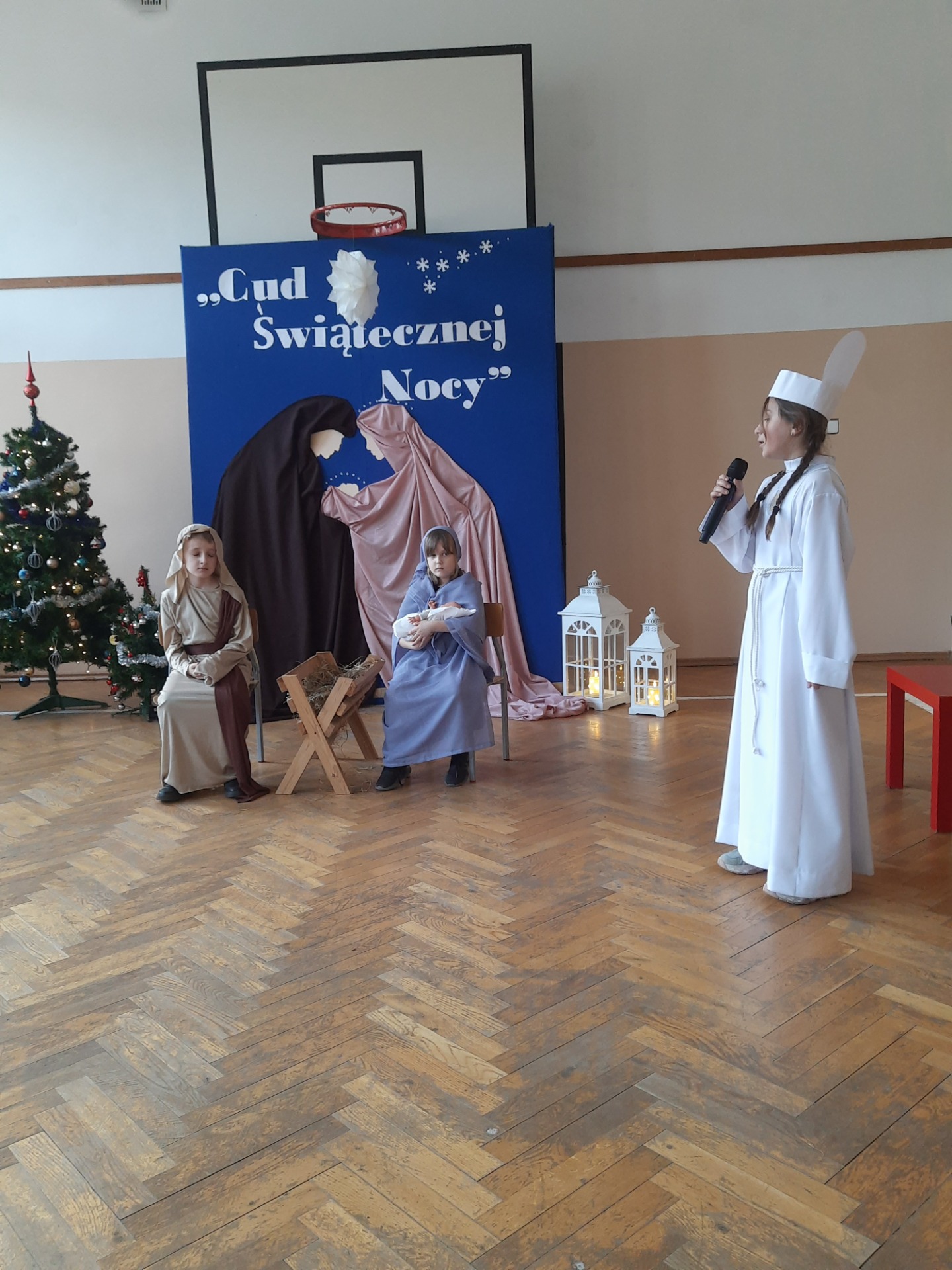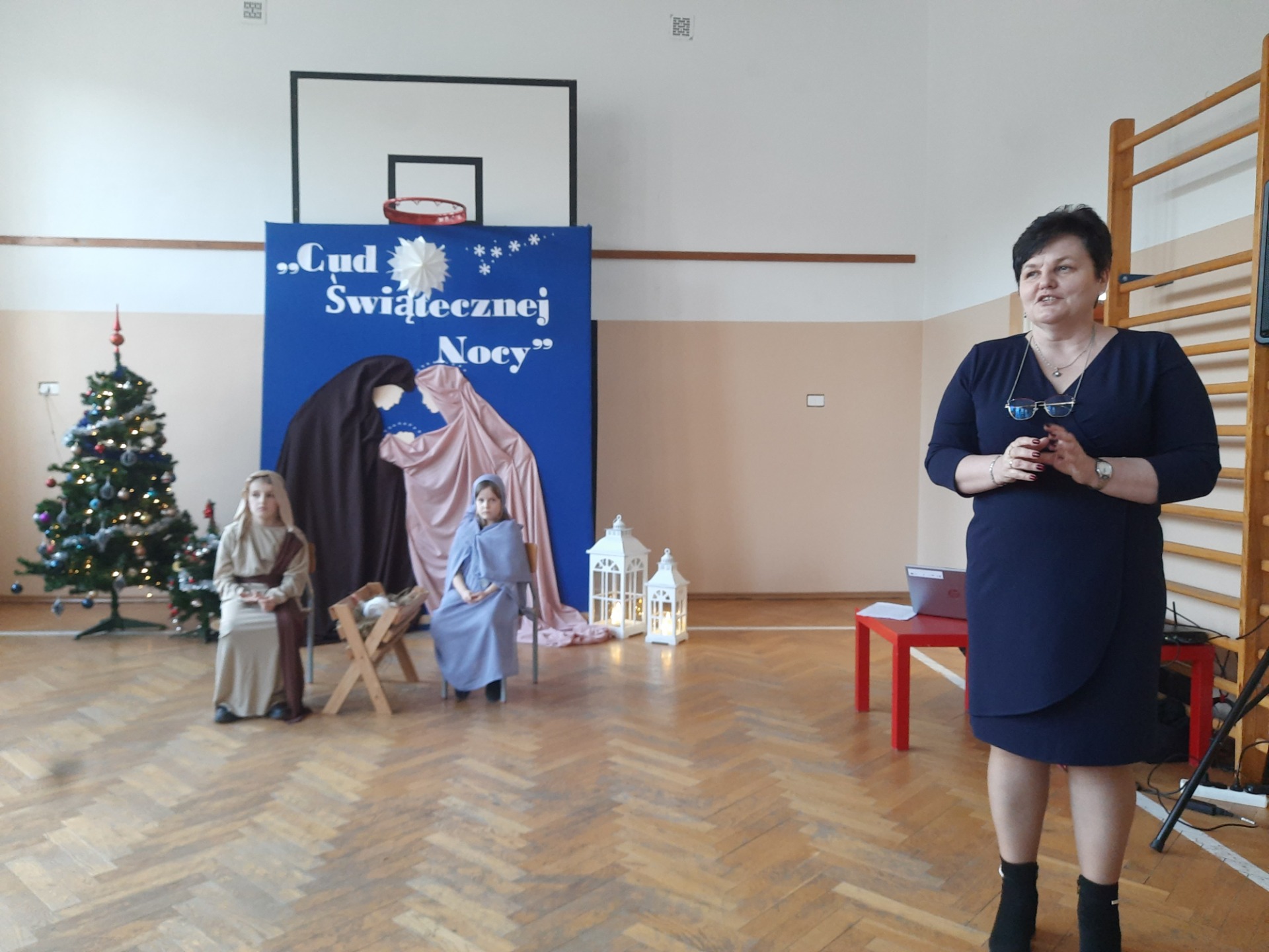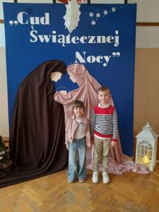 W dniu dzisiejszym hala sportowa wypełniła się ciepłem, wzruszeniem i radosnym oczekiwaniem🎄. Jasełka "CUD ŚWIĄTECZNEJ NOCY"❤️ były niezwykłym wydarzeniem, w którym szczególną rolę odegrali najmłodsi uczniowie naszej szkoły. Z ogromnym zaangażowaniem, odwagą i dziecięcą radością wcieli się oni w swoje role, prezentując historię Bożego Narodzenia w sposób pełen szczerości i autentycznych emocji. Ich śpiew i recytacje zachwyciły publiczność i zostały nagrodzone gromkimi brawami. Mali aktorzy udowodnili, że nawet najmniejsze serca potrafią przekazać wielkie wartości - miłość, dobro i nadzieję. Po części artystycznej odbyła się uroczysta wigilia, która stała się okazją do wspólnego przeżywania świątecznej atmosfery, dzielenia się opłatkiem, rozmów i integracji całej społeczności szkolnej. Pragniemy złożyć serdeczne podziękowania RODZICOM za ogromne zaangażowanie w przygotowanie tego wyjątkowego spotkania - za pyszne potrawy, świąteczny wystrój oraz stworzenie ciepłej, rodzinnej atmosfery. Podziękowania kierujemy również do Pań Radnych za słodkości i upominki dla naszych uczniów. Dzięki wspólnemu wysiłkowi uczniów, nauczycieli i rodziców uroczystość "CUD ŚWIĄTECZNEJ NOCY" na długo pozostanie w naszej pamięci, jako piękne i wzruszające wydarzenie, które przypomniało nam o prawdziwym sensie Świąt Bożego Narodzenia.