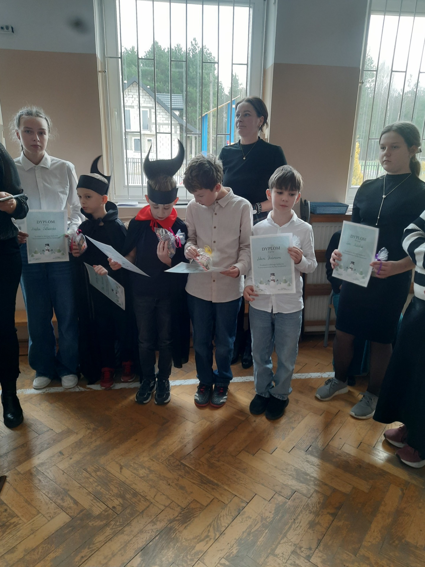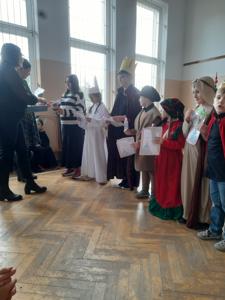 Na zakończenie uroczystości uhonorowano również laureatów szkolnego konkursu na bożonarodzeniową kartkę świąteczną. Nagrodzone prace zachwycały pomysłowością, estetyką i świątecznym klimatem, a ich autorzy wykazali się dużą kreatywnością i wrażliwością estetyczną. Serdecznie gratulujemy wszystkim uczestnikom konkursu. Karty z życzeniami trafiły do kl. II Szkoły Podstawowej w Blochach. Korzystając z okazji chcemy złożyć Państwu życzenia pochodzące z karty Filipa: Piękna jest radość w święta, ciepłe są myśli o bliskich. Niech pokój, miłość i szczęście otoczą dzisiaj Was wszystkich. Wesołych Świąt.🎄🎅