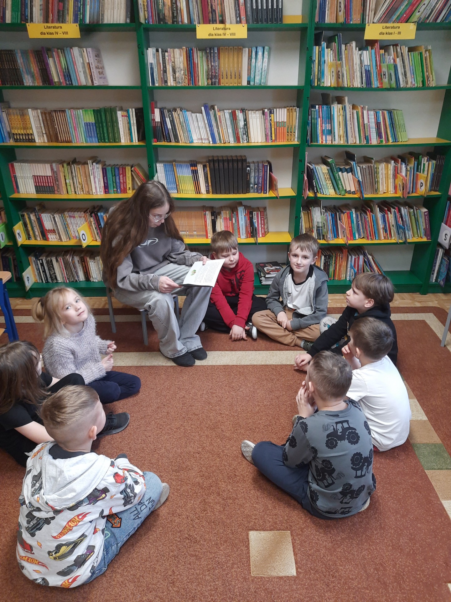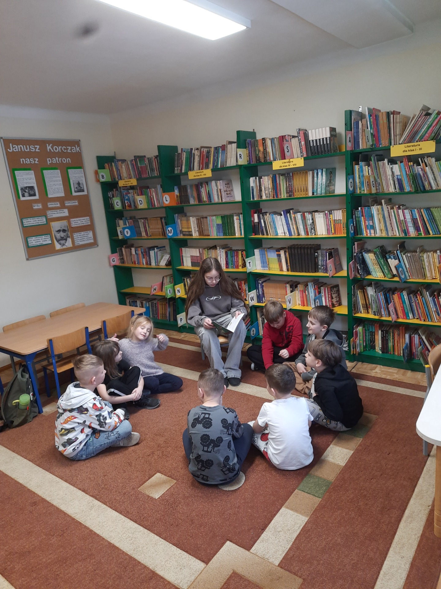 W dniu dzisiejszym ponownie zagościła u nas Amelka - uczennica klasy VIII. Czytała najmłodszym koleżankom i kolegom o smoku Kubie, który dzielnie stanął w obronie słabszych stając się ich bohaterem.